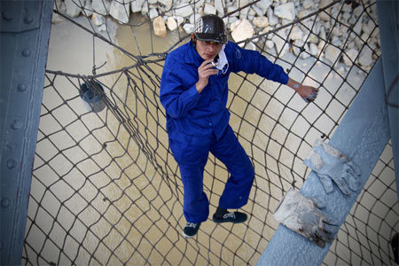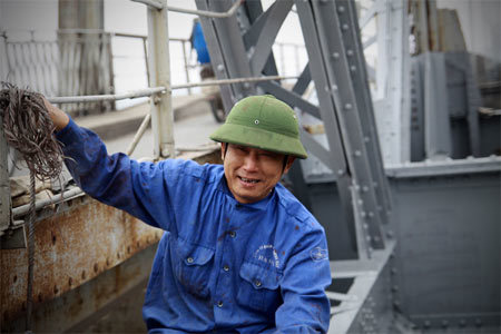 | Trong khi người khác đang tìm cách trốn rét, thì những công nhân này vẫn phong phanh hăng say lao động, vì nhiệm vụ "chăm sóc" vẻ đẹp cho cầu Long Biên |