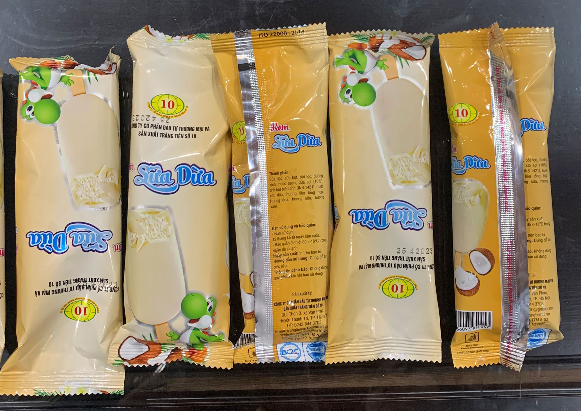 Trong quá trình kiểm tra, cơ quan chức năng phát hiện và thu giữ gần 9.400 hộp kem sữa đặc (tương đương gần 10 tấn) do nước ngoài sản xuất quá hạn sử dụng cùng 30.000 cây kem thành phẩm trên bao bì ghi “Công ty Cổ phần Đầu tư Thương mại và Sản xuất Tràng Tiền số 10”.