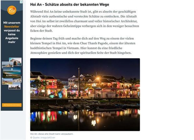 Bài viết cũng giới thiệu với độc giả về Hội An, tỉnh Quảng Nam. Tác giả nhấn mạnh rằng mặc dù Hội An không phải là một điểm đến xa lạ nhưng vẫn có rất nhiều điều tiềm ẩn để khám phá ngoài khu phố cổ sầm uất.
