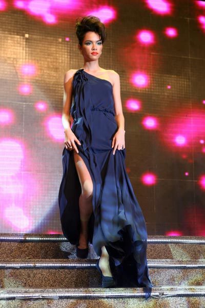 Người đẹp Hương Giang từng vào top 16 tại cuộc thi Hoa hậu Thế giới 2009 có số đo ba vòng 86 - 61-92 kèm chiều cao 1,8 m, nổi bật trong Đêm nữ hoàng nhờ bộ váy ngắn theo xu hướng thời trang xuân hè của năm nay:
