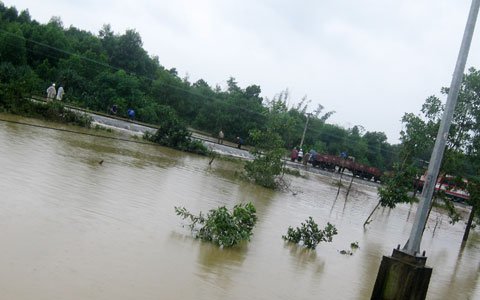 Lũ cuốn trôi đường ray, hàng ngàn khách ách tắc