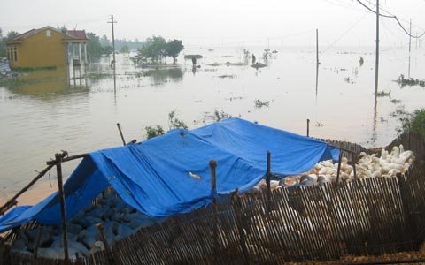 Mưa lớn, khiến mực nước sông Cẩm Lý dâng nhanh và bất ngờ, khiến người dân nơi đây mặc dù đã chủ động chống lũ ngay từ đầu nhưng vẫn trở tay không kịp.