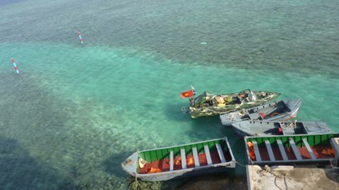 | Xuồng hải quân Việt Nam neo bên đảo Tiên Nữ, quần đảo Trường Sa. Ảnh: Chu Thanh Vân |