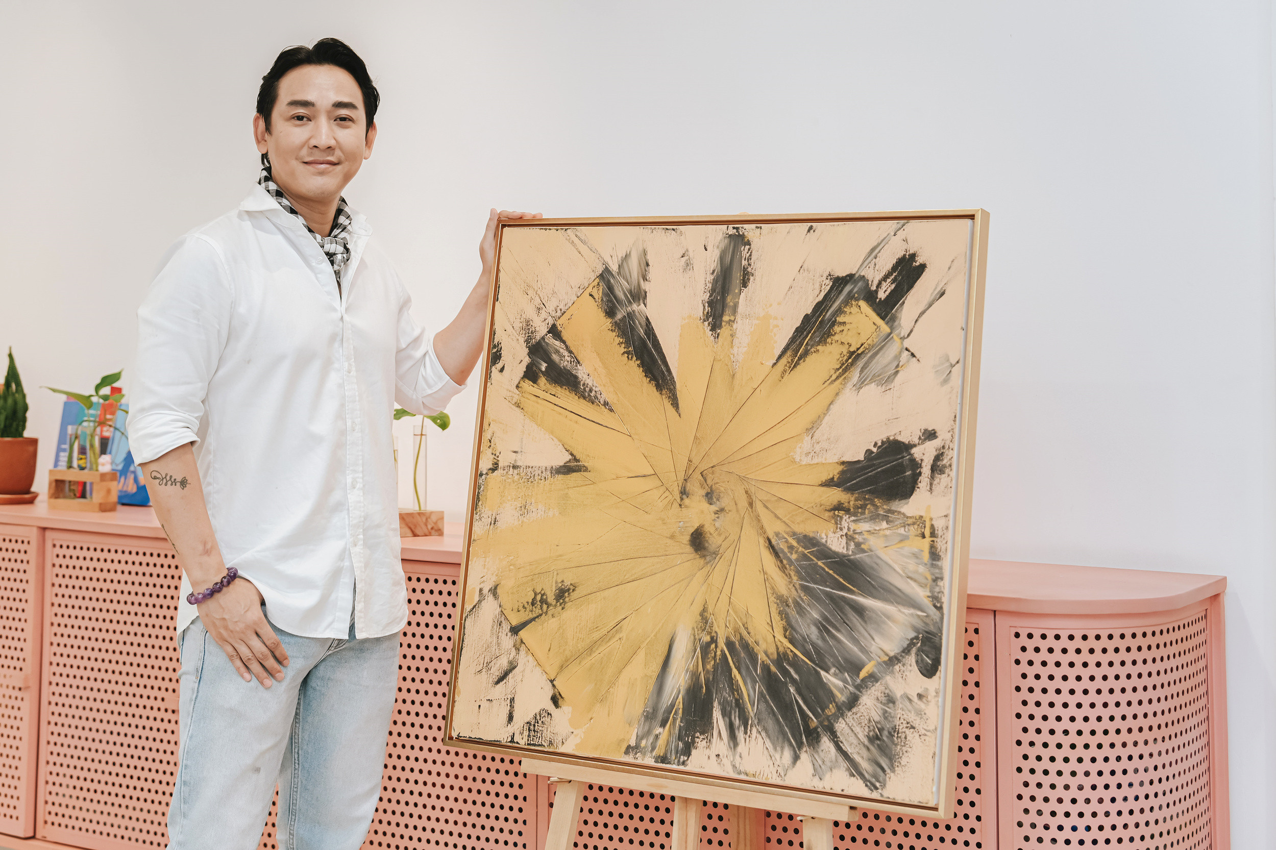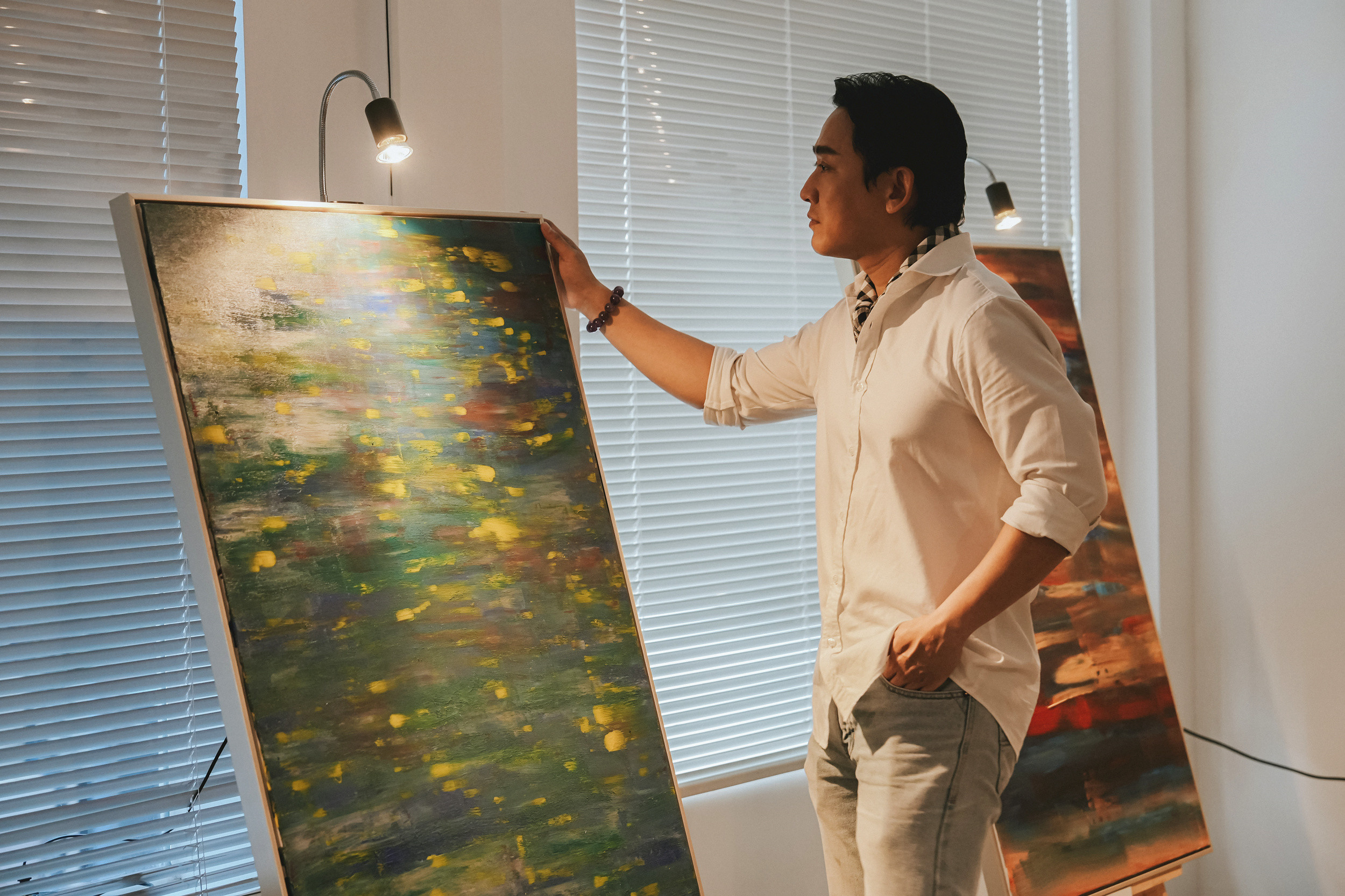 Anh nhấn mạnh không vẽ tranh để tìm hào quang mà vì sự thôi thúc trong tâm hồn. Diễn viên tin nghệ thuật là "sự khiêm tốn và sẻ chia", muốn dùng tác phẩm mang đến cho người xem năng lượng tốt, cảm giác bình yên.