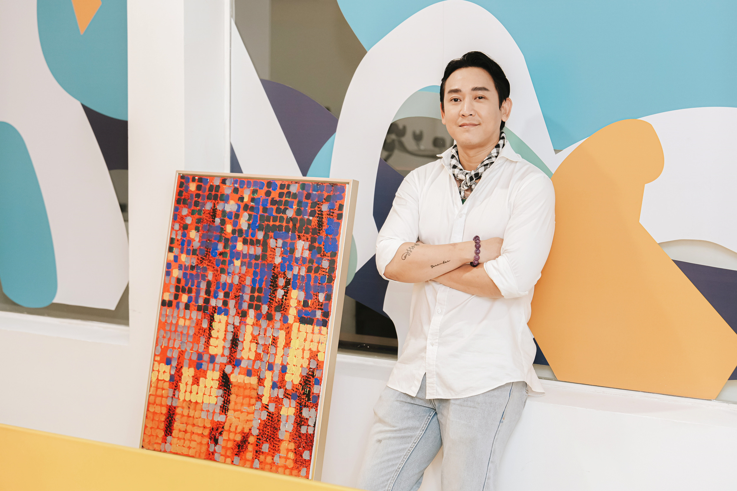 "Lúc vẽ, tôi cảm nhận rõ ràng trực giác, thả mình theo dẫn dắt của nó để thể nghiệm nhiều hơn. Với 'Vùng vênh', tôi muốn mang 'dòng nước' của ý nghĩ tích cực và năng lượng êm ả loang ra mọi người", Hứa Vĩ Văn chia sẻ.