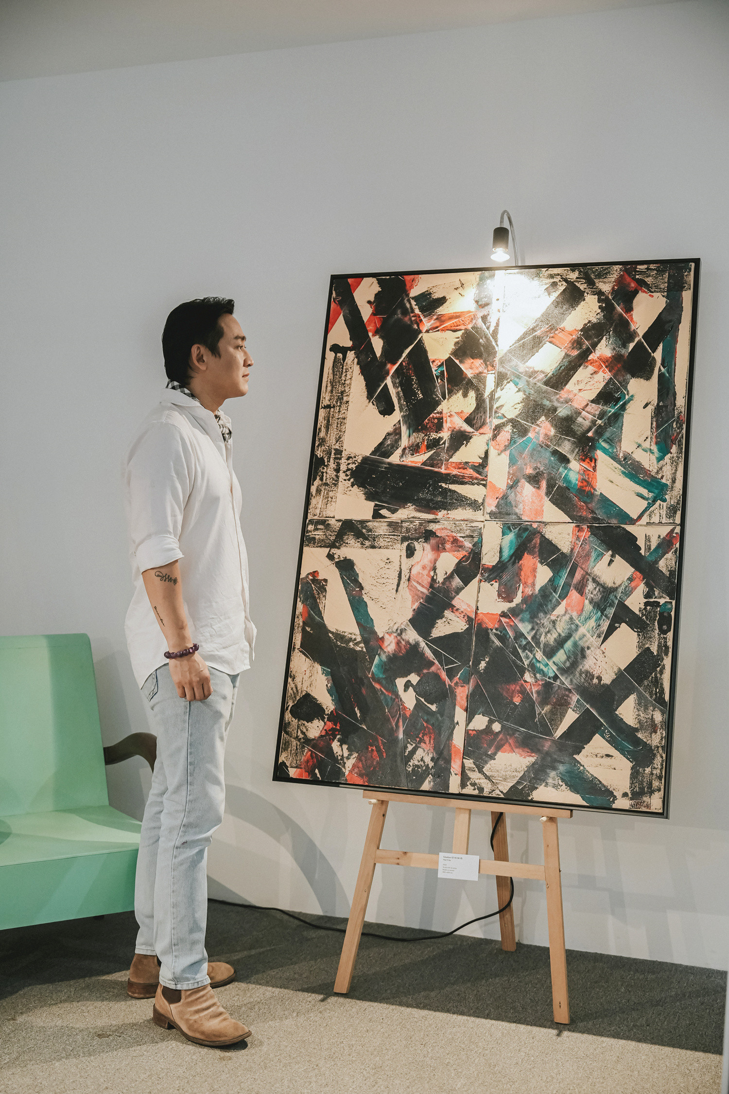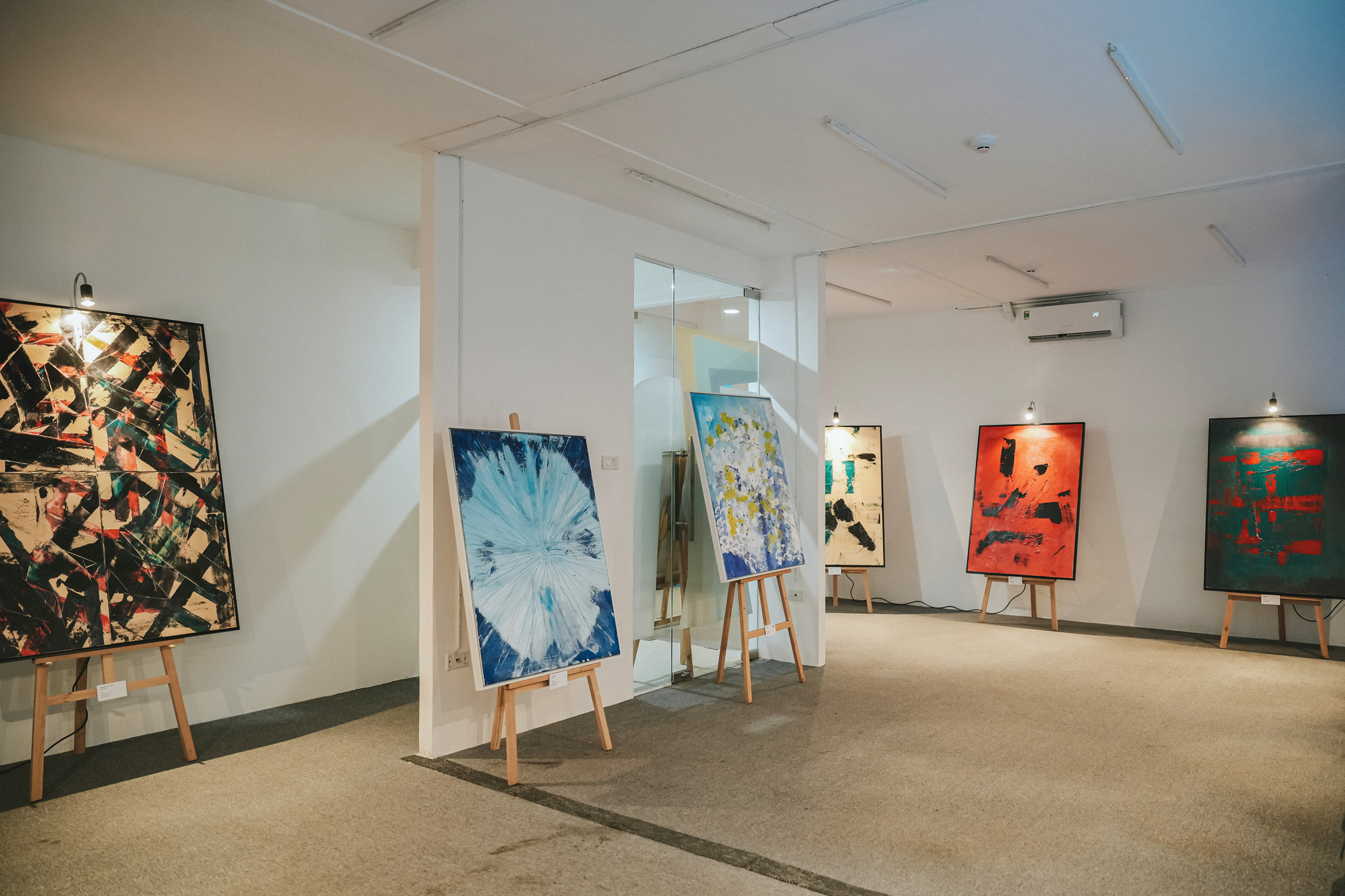 Triển lãm cá nhân thứ 5 "Vùng vênh (Immense)" diễn ra tại 48A Võ Văn Tần, Quận 3, TP.HCM trưng bày 20 tác phẩm mang phong cách trừu tượng.