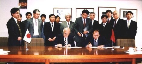 | Lễ ký kết hợp tác giữa Viện RIKEN (nơi tạo ra nguyên tố mới 113) và Viện NLNTVN diễn ra ở Wako, Tokyo, Nhật Bản. |