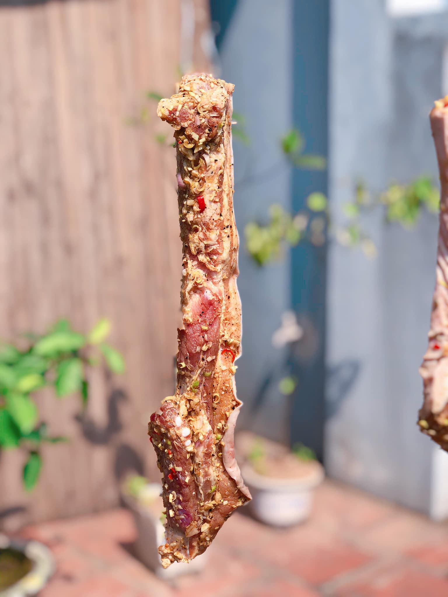 - Sau khi phơi xong các bạn có thể đem thịt vào và chế biến như: áp chảo, chiên, nướng, cho vào nồi chiên không dầu... tùy sở thích.