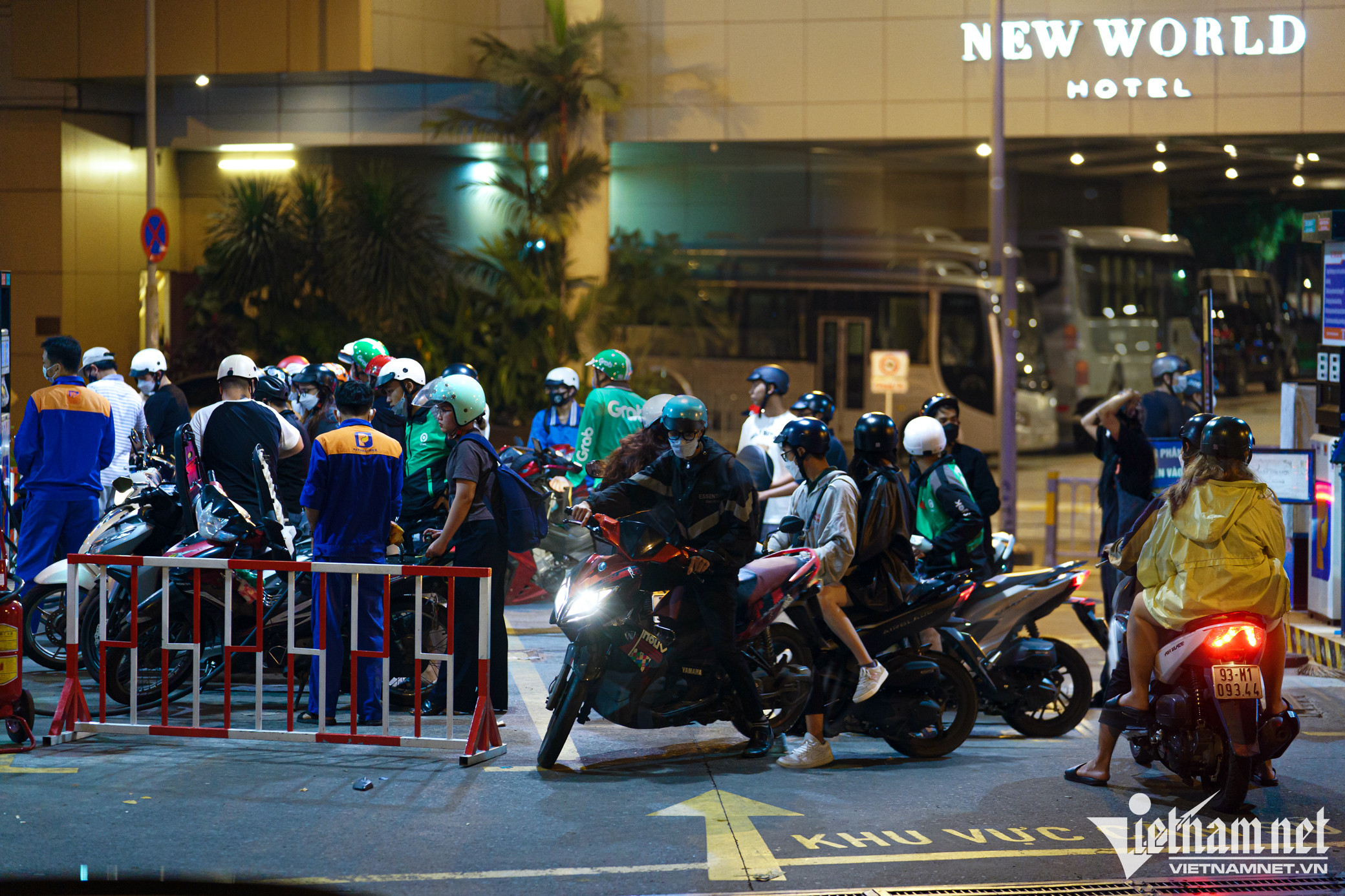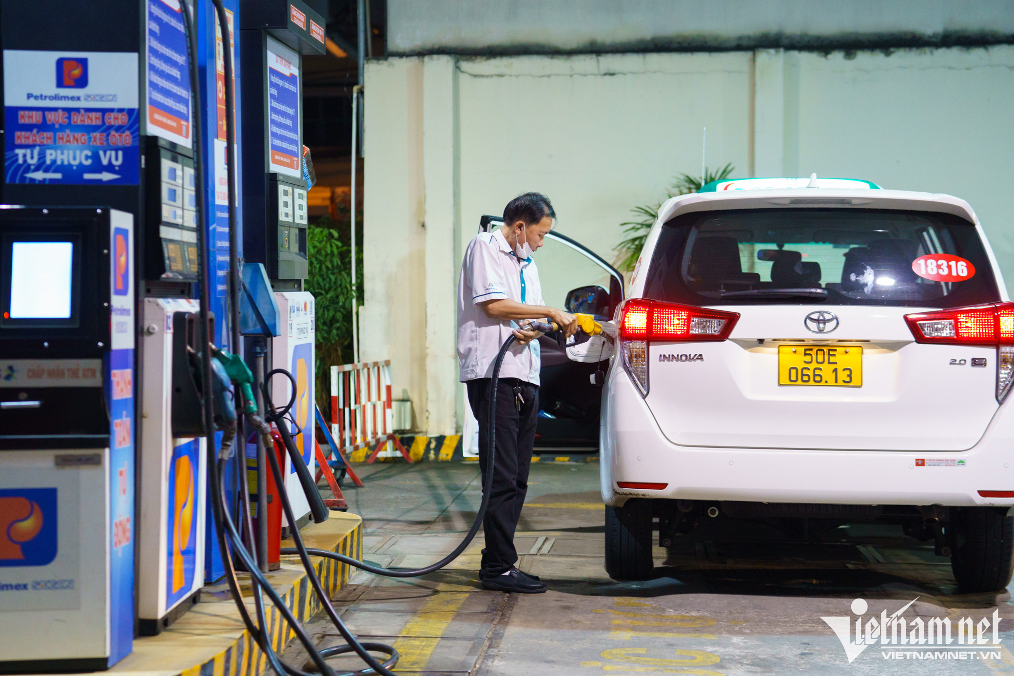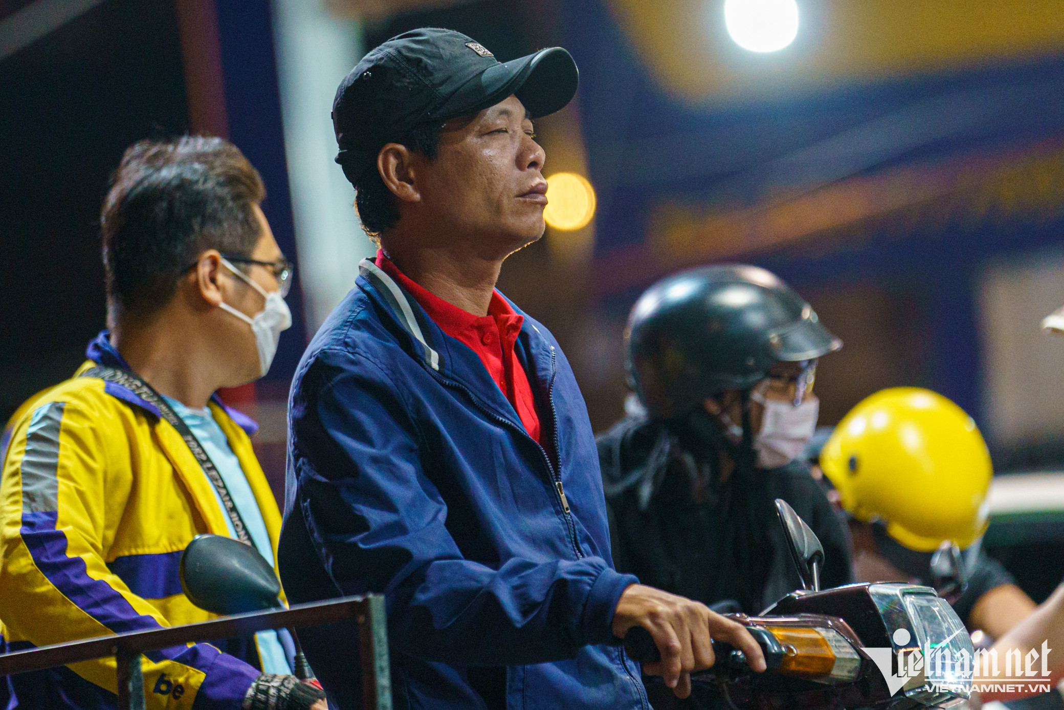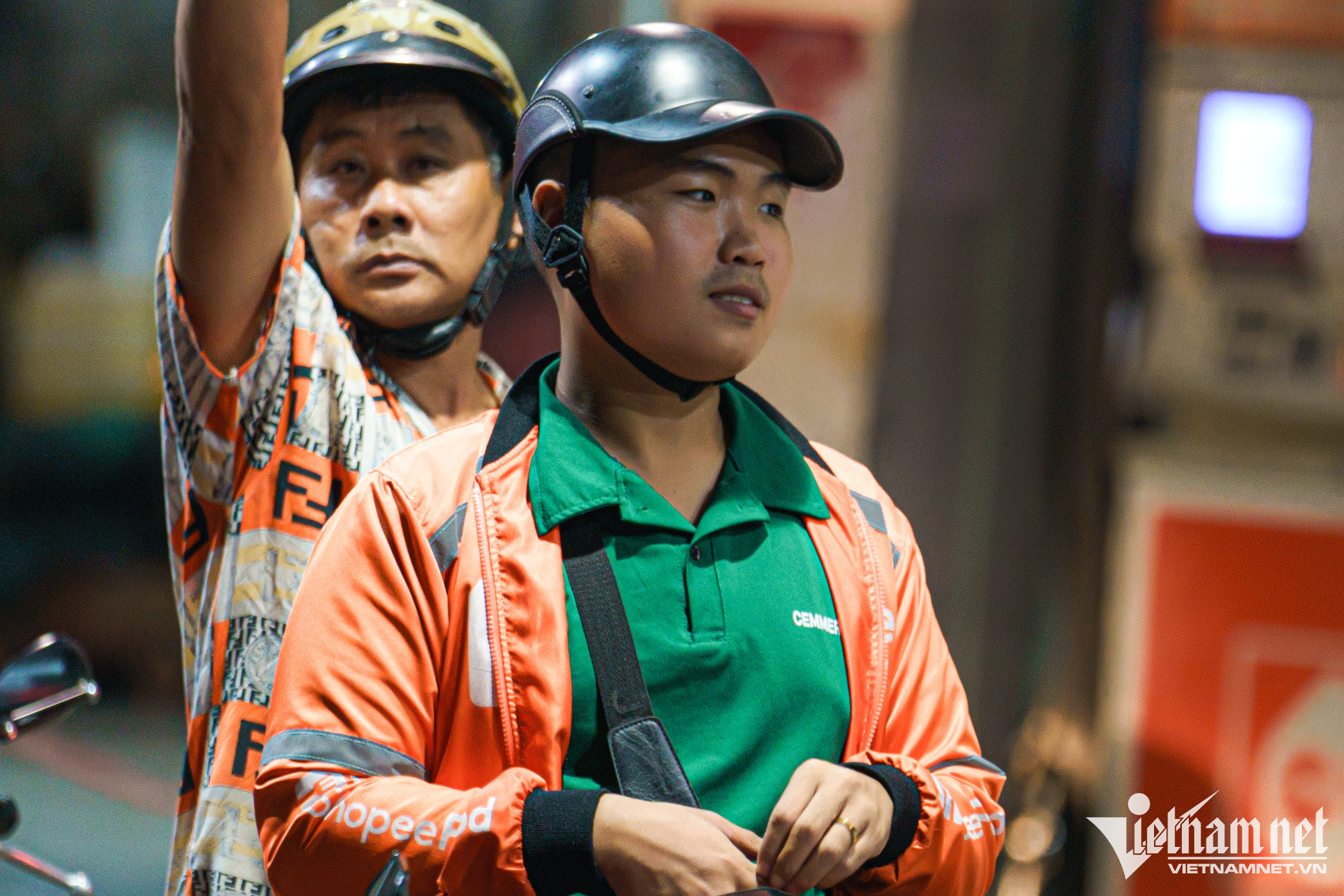 Số lượng cây xăng tại TP.HCM hết hàng phải tạm ngưng hoạt động tăng lên con số 67 trong ngày 10/10. Điều này khiến tình hình mua bán xăng dầu trên địa bàn càng lúc càng căng thẳng. Dòng người đi xe máy xếp hàng dài tràn ra đường tại cây xăng trên đường Trần Não từ tối đến nửa đêm. Lúc 0h ngày 11/10, cây xăng trên đường Bến Vân Đồn (quận 4) vẫn tấp nập khách đến đổ xăng. Hình ảnh này được cho là khác lạ so với ngày thường.Hàng trăm khách vây kín cả 3 trụ bơm. Có lúc trạm xăng tăng cường thêm 2 trụ bên trong để hỗ trợ một số trường hợp cấp bách. Nhân viên cây xăng làm việc liên tục. Cửa hàng trưởng cũng ở lại hỗ trợ đến gần 1h sáng. Tại các trụ tự phục vụ, tài xế taxi luân phiên nhau bơm xăng không ngừng nghỉ.Thùy Dương (quận 8) cho biết đã đi tìm xăng để mua lúc trưa và chiều nhưng do gặp cảnh xếp hàng dài chờ đợi khiến chị phải quay về. "Tôi quyết định đi lúc 0h để được hưởng sự vắng vẻ, thoải mái nhưng không ngờ cũng có nhiều khách như vậy", Dương chia sẻ.Anh Nguyễn Trường Trí Hải đi đổ xăng lúc 0h cho vắng, nhưng bất ngờ thấy lượng người xếp hàng đông không kém so với ban ngày. "Tôi đi làm về từ 21h, nghĩ rằng 0h ra đổ xăng sẽ không phải chờ đợi lâu nhưng cuối cùng vẫn phải chờ hơn 30 phút mới có được bình xăng", anh Hải kể.Trạm xăng dầu ở góc đường Lý Thái Tổ - Lê Hồng Phong (quận 10) đã hoạt động trở lại sau khi được cung cấp thêm hàng. Ngay khi mở bán, khách hàng xếp hàng trật tự vào mua xăng lúc nửa đêm.Lúc 0h30, dòng người chờ mua xăng kéo dài hơn chục mét. Trạm này bán với số lượng khá nhỏ giọt, giới hạn mỗi người chỉ được mua tối đa 50.000 đồng.Do đã quá khuya lại phải chờ đợi lâu, phần lớn khách tỏ ra mệt mỏi. Anh Huy cho biết dù mệt nhưng vẫn cố chờ để có nhiên liệu mà đi. "Thông thường, đổ xăng chỉ vỏn vẹn vài phút là xong, nhưng mấy hôm nay tôi phải mất ít nhất 30 phút mới đến lượt", anh Huy nói.Anh Huy Hùng mắt díp lại trong lúc xếp hàng chờ đổ xăng. "Cả ngày đi làm đã quá mệt mỏi, nghĩ tranh thủ khuya ra đổ nhanh rồi về, nhưng không ngờ chờ vẫn phải chờ đợi lâu đến vậy", anh phàn nàn.Đến 1h sáng, cây xăng đối diện khách sạn New World vẫn đón lượng khách liên tục đổ về. Cửa hàng này vẫn bán xăng cho khách mua bằng can, chai nhựa với dung tích từ 1,5-30 lít.