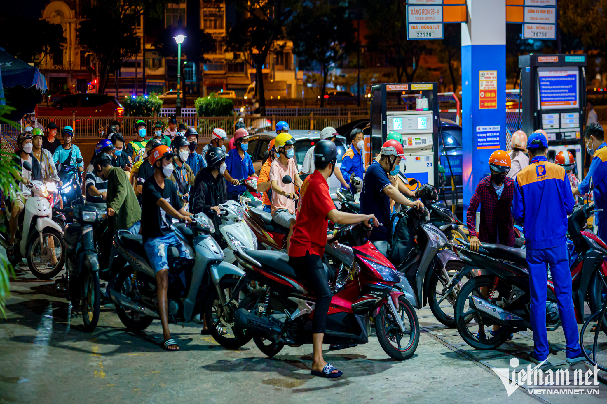 Nhiều người dân ở TP.HCM nửa đêm bật dậy đi mua xăng để tránh đông đúc nhưng ra tới nơi họ vẫn phải xếp hàng dài và chờ hơn 30 phút.