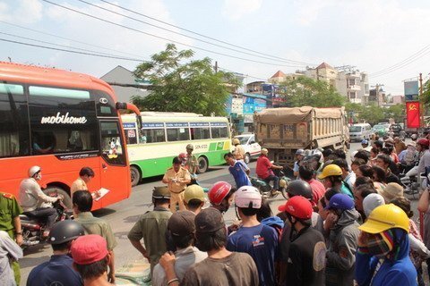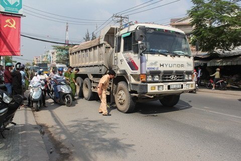 Tại hiện trường chúng tôi ghi nhận, trên mặt đường xuất hiện một vệt cày khá dài. Chiếc xe máy trong tình trạng hư hỏng nặng nằm kề bên thi thể nạn nhân. Cách đó khoảng 10m chiếc xe ben đang dừng trên đường.