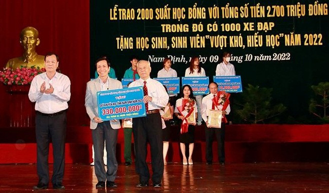 Được biết, đây là năm thứ 10 Hội Khuyến học tỉnh Nam Định trao xe đạp khuyến học cho các em học sinh với tổng số 10.002 xe và là đợt trao học bổng lớn nhất trong năm của Hội.
