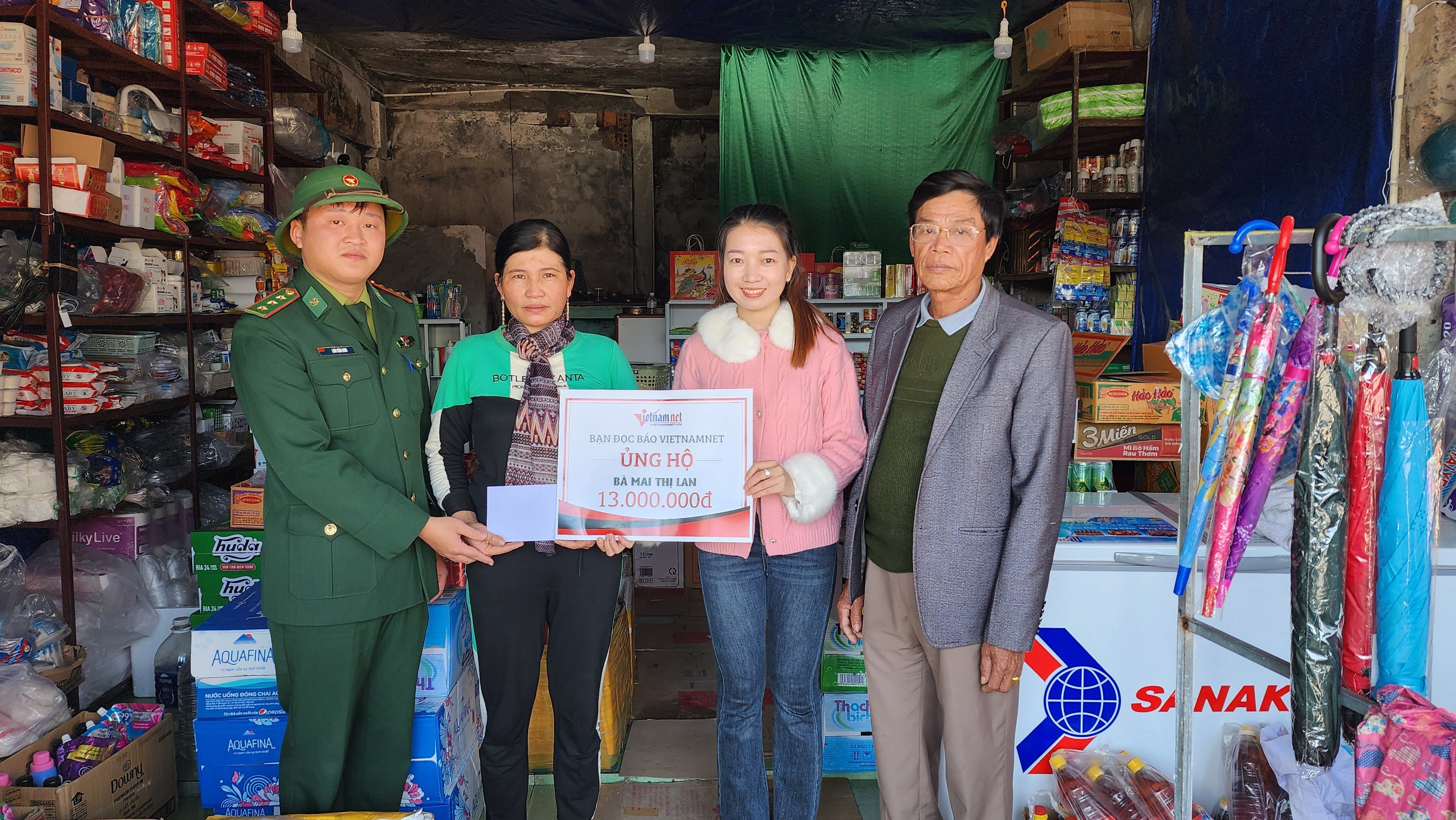 Trước đó, báo VietNamNet cũng đã trao số tiền 13 triệu đồng cho gia đình bà Mai Thị Lan. Bà Lan là nhân vật trong bài “Tài sản gây dựng 21 năm bị thiêu rụi giáp Tết, cả gia đình điêu đứng”.
