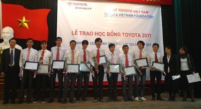 Năm 2011 Quỹ Toyota VN sẽ trao tặng tổng số 146 suất học bổng với tổng trị giá là 543 triệu đồng cho 131 sinh viên xuất sắc (3.000.000 đồng/học bổng) cùng 15 sinh viên và nhóm sinh viên có nghiên cứu khoa học xuất sắc (10.000.000 đồng/học bổng) thuộc các ngành cơ khí, kỹ thuật, môi trường của tổng số 16 trường đại học trên cả nước.