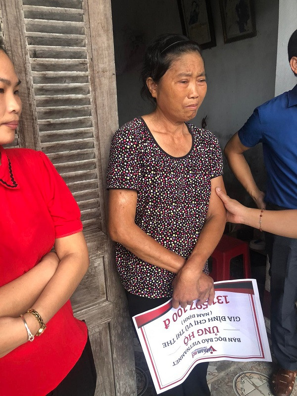 Sau khi hoàn cảnh của bà Vũ Thi The được Báo VietNamNet chia sẻ, gia đình đã nhận được nhiều sự giúp đỡ của các mạnh thường quân trong và ngoài nước. Gia đình cho biết, ngoài số tiền hôm nay báo VietNamNet về trao còn có nhiều bạn đọc gửi về trực tiếp giúp đỡ gia đình.