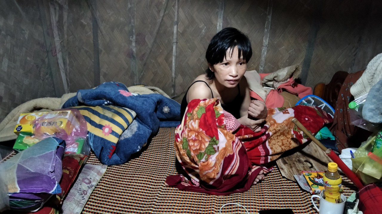 Sau gần 6 tháng điều trị tại Bệnh viện Đa khoa tỉnh Hà Tĩnh, chị Hứa phải trở về nhà vì gia đình không còn khả năng lo các khoản kinh phí. Hàng ngày, chị cứ ngồi trên chiếc gường chật hẹp, ánh mắt thẫn thờ, sức khỏe yếu ớt vì đến thuốc thang duy trì cũng không có tiền mua.