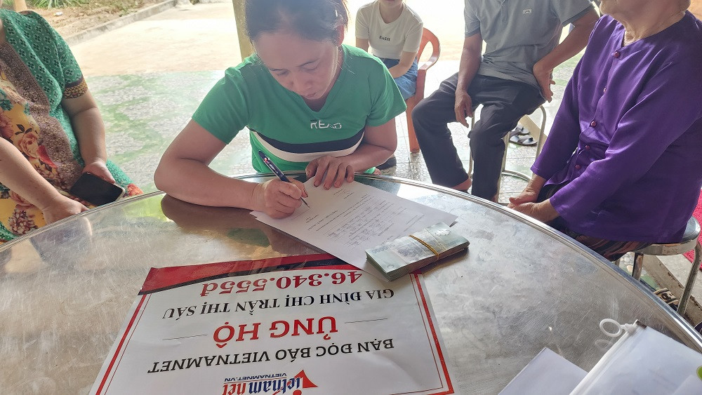 Báo VietNamNet vừa phối hợp với lãnh đạo xã Vĩnh Thủy (huyện Vĩnh Linh) trao số tiền hơn 46 triệu đồng do bạn đọc ủng hộ cho chị Trần Thị Sáu ở thôn Đức Xá, xã Vĩnh Thủy, huyện Vĩnh Linh, Quảng Trị.
