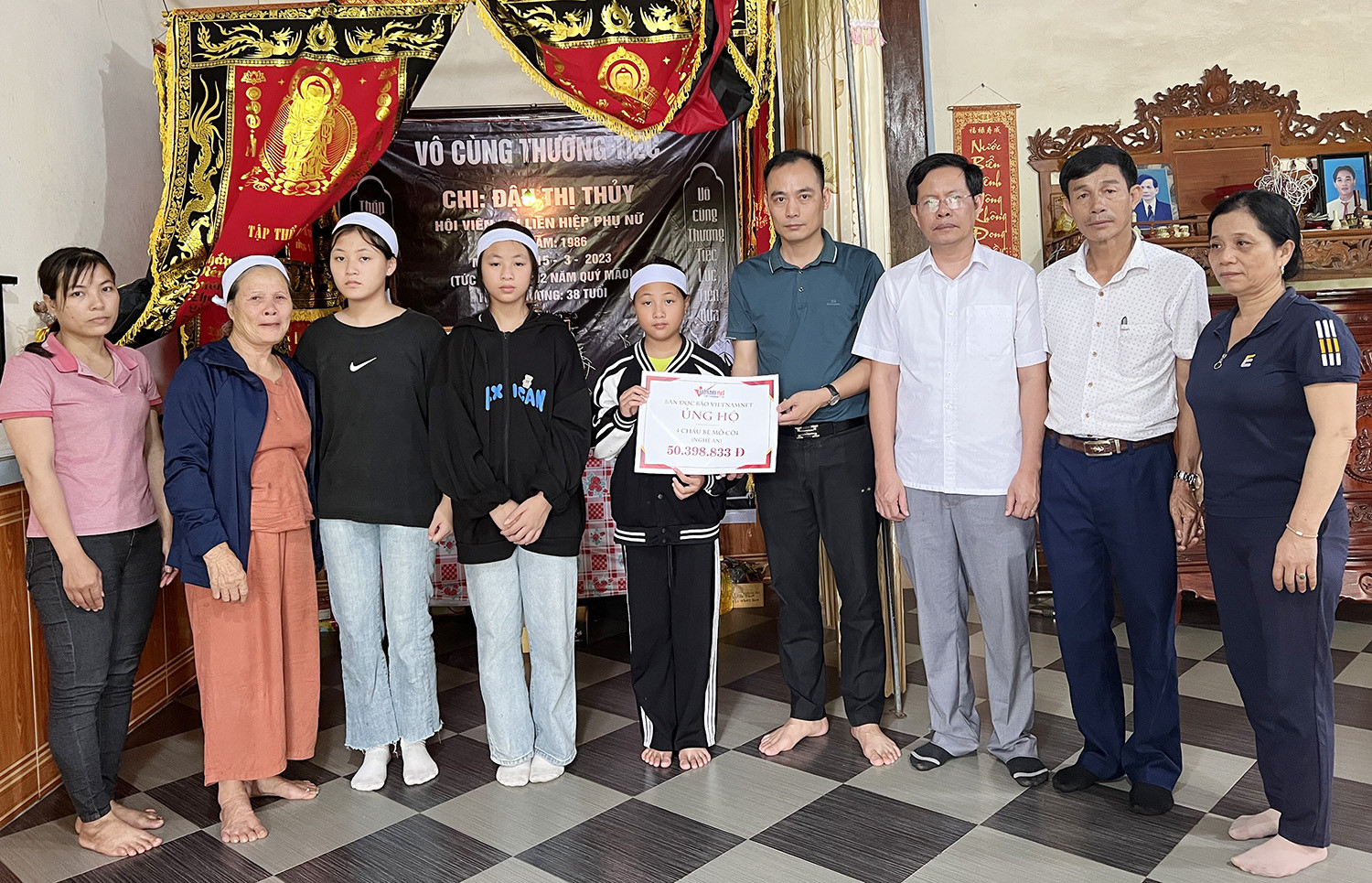 Vừa qua, đại diện Báo VietNamNet phối hợp với lãnh đạo thị xã Hoàng Mai, UBND phường Quỳnh Lập trao số tiền 50.398.833 đồng bạn đọc ủng hộ đến hoàn cảnh 4 anh em mồ côi trên địa bàn, nhân vật trong bài viết: Cha mẹ lần lượt qua đời, để lại 4 con bơ vơ.