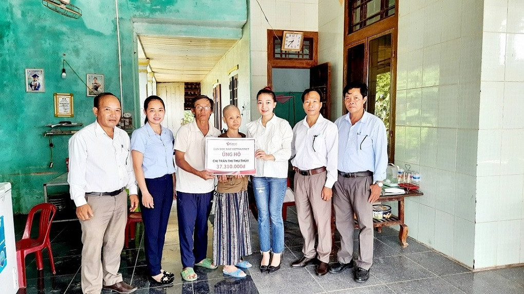 Mới đây, Báo VietNamNet vừa trao số tiền hơn 37 triệu đồng do bạn đọc ủng hộ đến gia đình chị Trần Thị Thu Thủy (ở đội 4, thôn Nại Cửu, xã Triệu Thành, huyện Triệu Phong, Quảng Trị). Chị Thủy mắc bệnh ung thư tụy, con gái Hoàng Phương Anh (SN 2000) lại bị viêm cột sống dính khớp, nằm liệt giường suốt 4 năm nay. Mẹ con chị Thủy là nhân vật trong bài viết “Chồng kiệt quệ vì chăm vợ và con cùng mắc bệnh hiểm nghèo”.