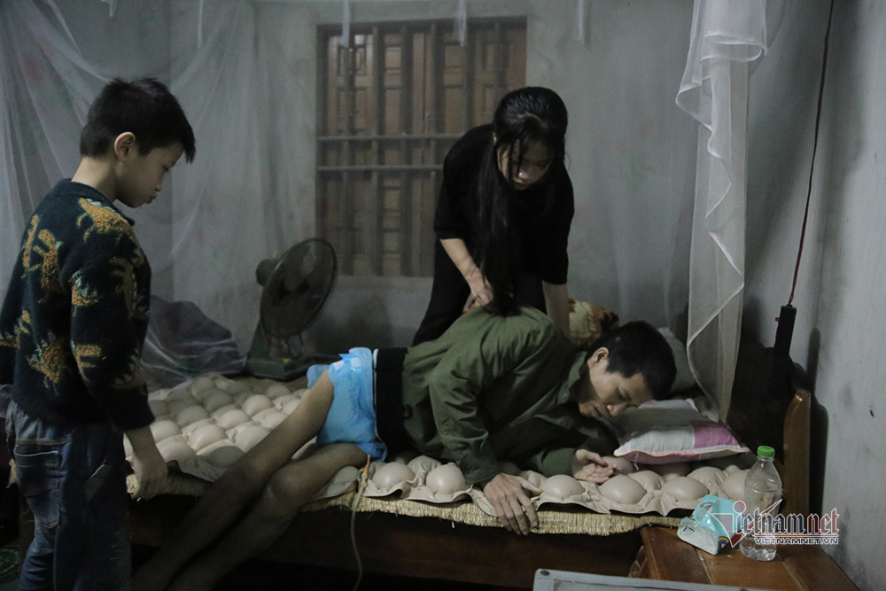Gần hai năm nay, anh Công nằm liệt giường, hai chị em Hiền Linh và Tuấn Anh bơ vơ, đau xót trước nỗi đau của bố.