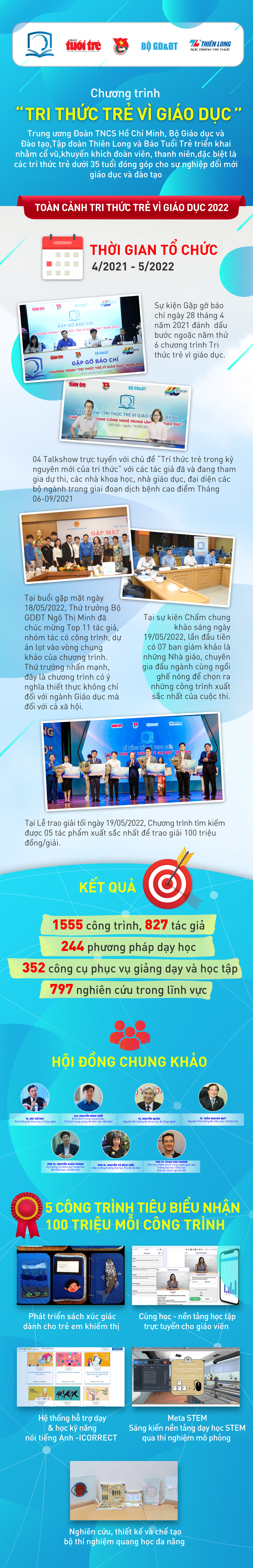 Tri thức trẻ vì giáo dục 2021 vừa tìm ra 5 công trình - ý tưởng xuất sắc đóng góp cho ngành giáo dục và trao giải 100 triệu mỗi công trình.