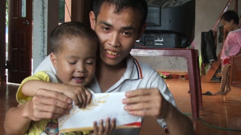 Chúng tôi đã từng về gia đình bé Quân trong một ngày đầu năm, nghe về hoàn cảnh đầy thương cảm của hai bố con. “Thằng bé độ 4 tuổi, nặng 10 cân, dáng đau ốm và ám ảnh nhất là nó luôn thở hổn hển một cách khó nhọc…bị cả bệnh tim, lẫn phổi”. Còn anh Ánh bị di chứng chất độc màu da cam nên quặt quẹo, ốm yếu.
