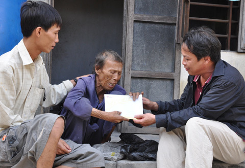 P.V VietNamnet trao tiền cho bà Trần Thị Quạ