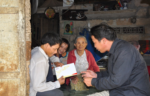 P.V VietNamNet trao tiền cho gia đình anh Nguyễn Thành Quang