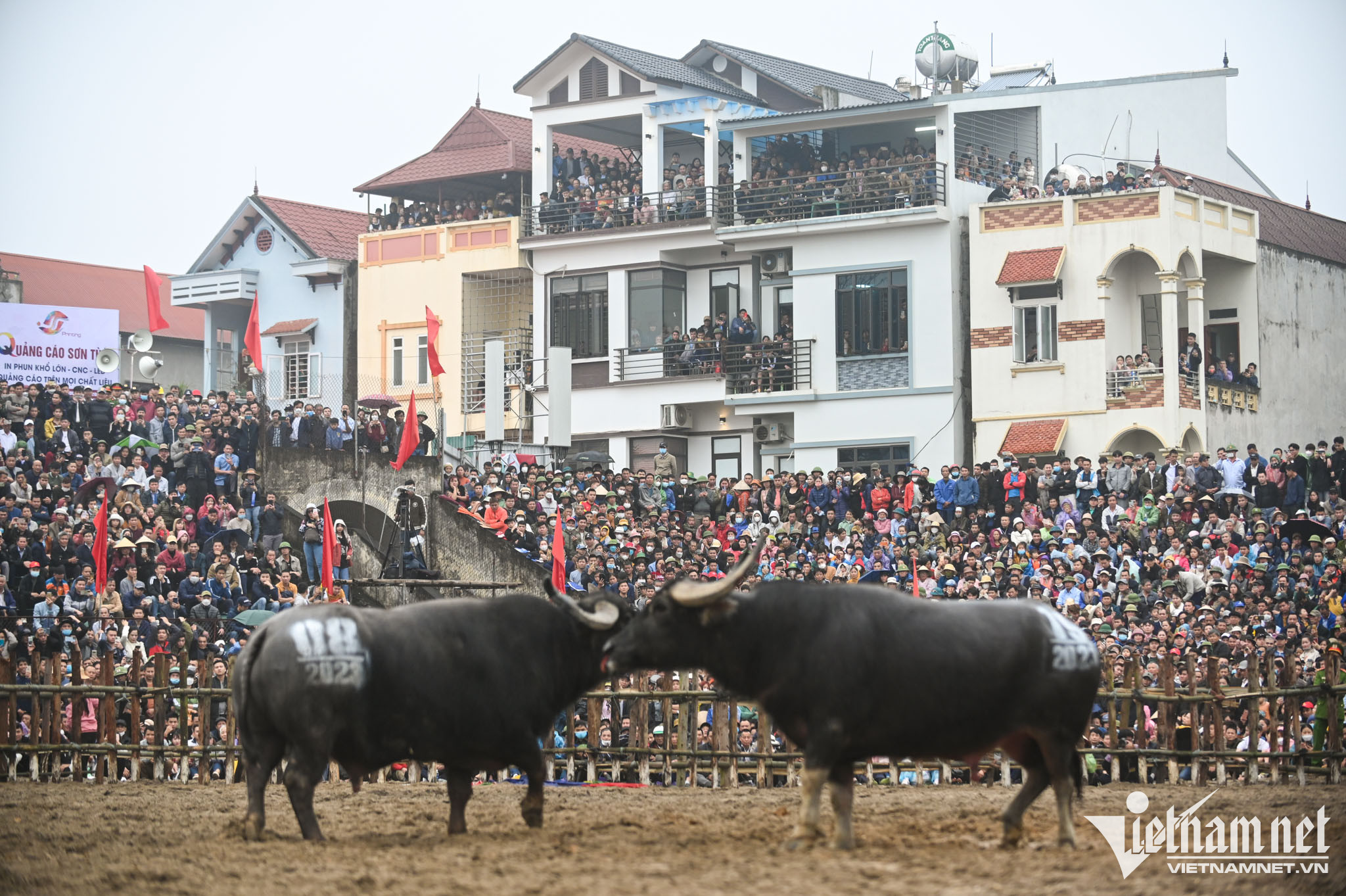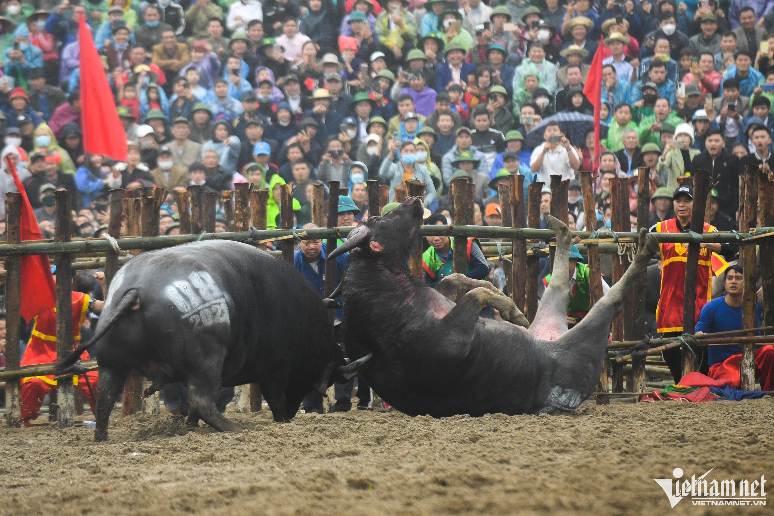 Tuy trời mưa nhưng số lượng khán giả đến với lễ hội vẫn không giảm. Không khí trên khán đài luôn náo nhiệt với tiếng hò reo dõi theo từng màn đấu.