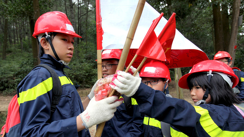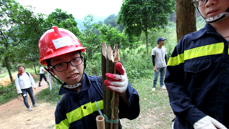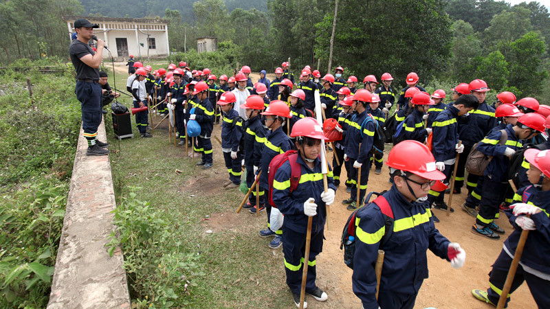 Bài thực hành rèn luyện kỹ năng sinh tồn trong rừng được tổ chức ở núi Hàm Lợn (Sóc Sơn - Hà Nội) sát với điều kiện thực tế, khiến những trẻ nhỏ chỉ quen với sự bảo bọc của người thân, gia đình đổ không ít mồ hôi, nước mắt.