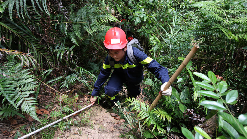 Có những đoạn đường, các em phải vận dụng nhiều kỹ năng như dùng gậy, bám dây và phải rất thận trọng để không ngã