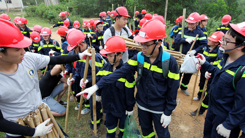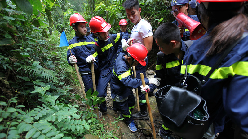 Mỗi trẻ được phát một cây gậy để sử dụng trong quá trình vượt rừng