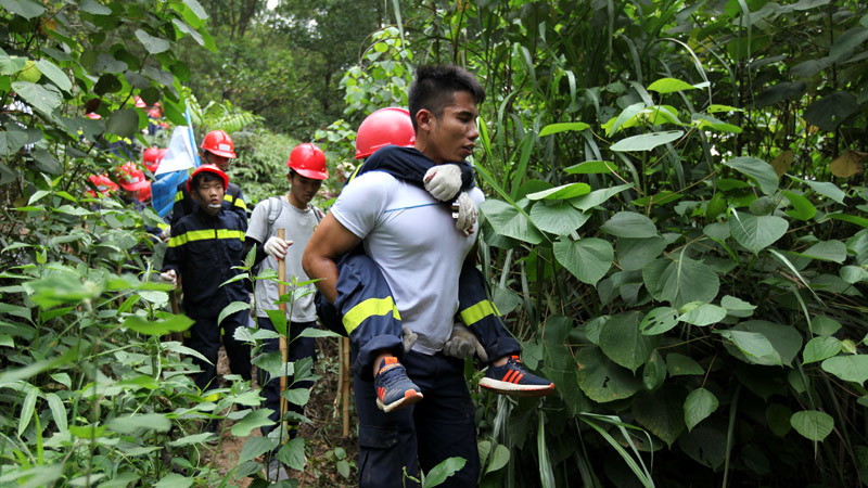 Sau một cú trượt chân, Phạm Ngọc Quang không thể đi tiếp, đã phải nhờ trợ giúp của tình nguyện viên