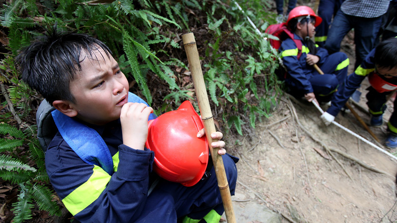 Không ít lần, các em mếu máo do quá mệt sau những chặng băng rừng