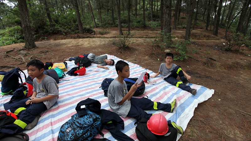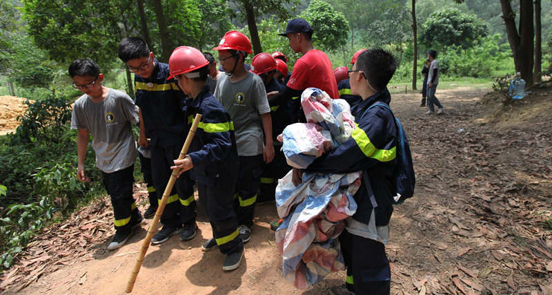 Bài thực hành rèn luyện kỹ năng sinh tồn là một học phần trong khóa học Trại hè lính cứu hỏa, vừa được tổ chức ở núi Hàm Lợn (Hà Nội), đã được 87 em nhỏ từ 7 - 15 tuổi hoàn thành với nhiều mồ hôi và cả nước mắt.