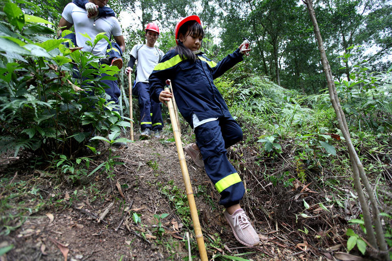 Những bé gái trong khóa học tỏ ra không hề kém cạnh các bạn nam trên quãng đường vượt rừng rất khó khăn