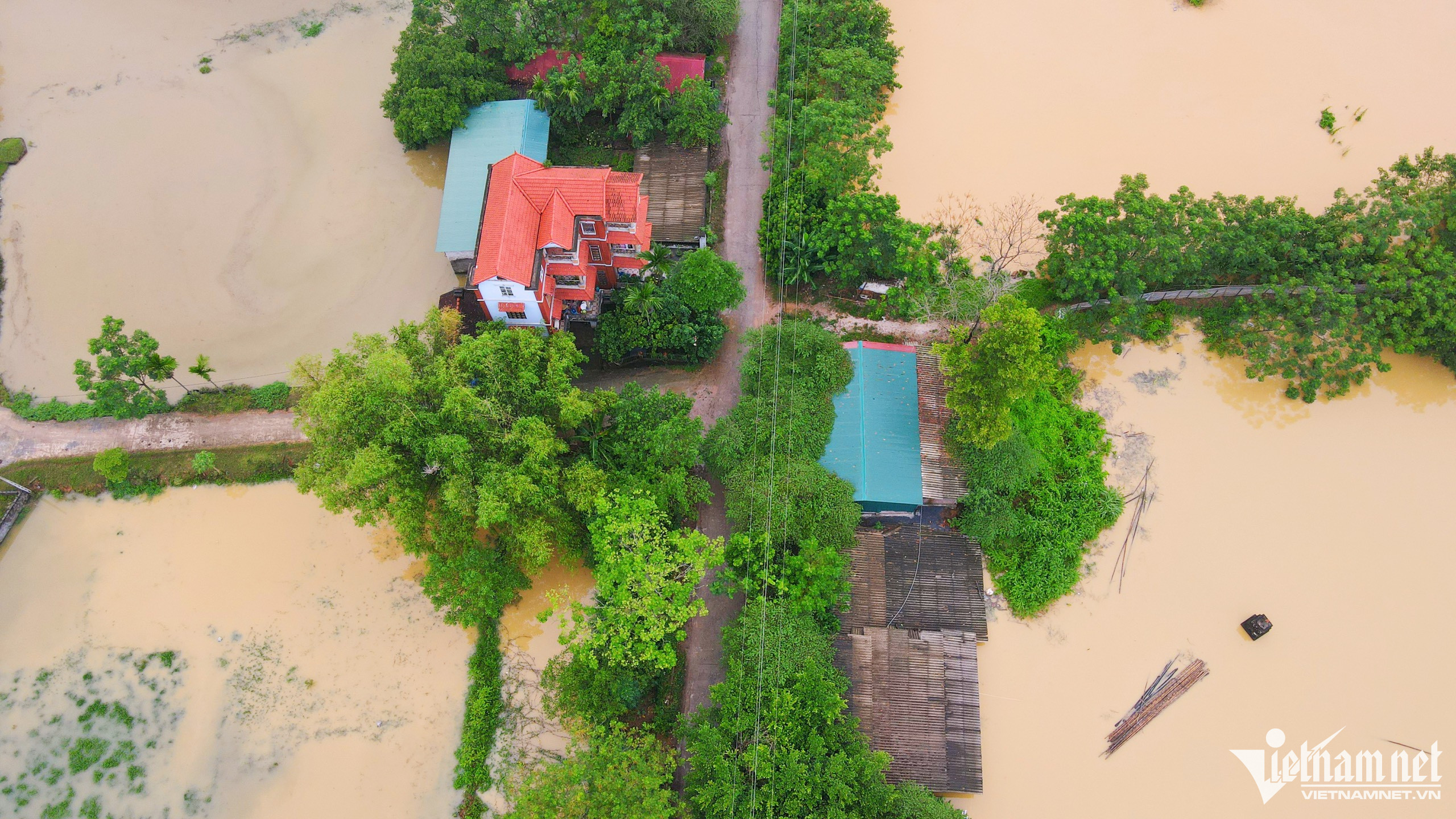 Chiều tối ngày 9/9, con nước dữ đã tạm ngừng dâng cao. Một số điểm ngập nặng nhất của huyện Chương Mỹ là đê Bùi 2, cầu Yên Trình, bến thuyền, khu vực nhà dân nằm gần sông...