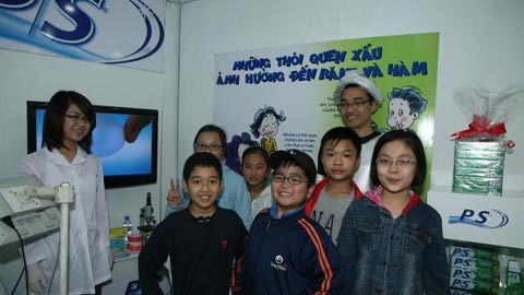 Trà Xanh, các em học sinh còn được các bác sĩ khám và tư vấn cách chăm sóc răng.