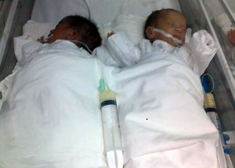 Rất nhiều ca sinh non tại Bệnh viện Phụ sản Trung ương là do mẹ mang thai đôi. BS Hà cho biết: “Một ca sinh đôi, là con trai, cân nặng 700g và 900g cũng vừa ra viện gần đây. Người mẹ đẻ non khi thai mới 26 tuần tuổi. Từ phòng mổ mang lên đây, chúng tôi đã ngay lập tức phải đặt ống nội khí quản, cho hai bé thở máy luôn. Đây cũng là một ca khó khăn vì cả hai đều mắc các bệnh như các trẻ sinh non khác như bệnh võng mạc, khó khăn về ăn uống. Cả hai bé vừa phải mổ mắt và tiêm kháng sinh về bệnh này.