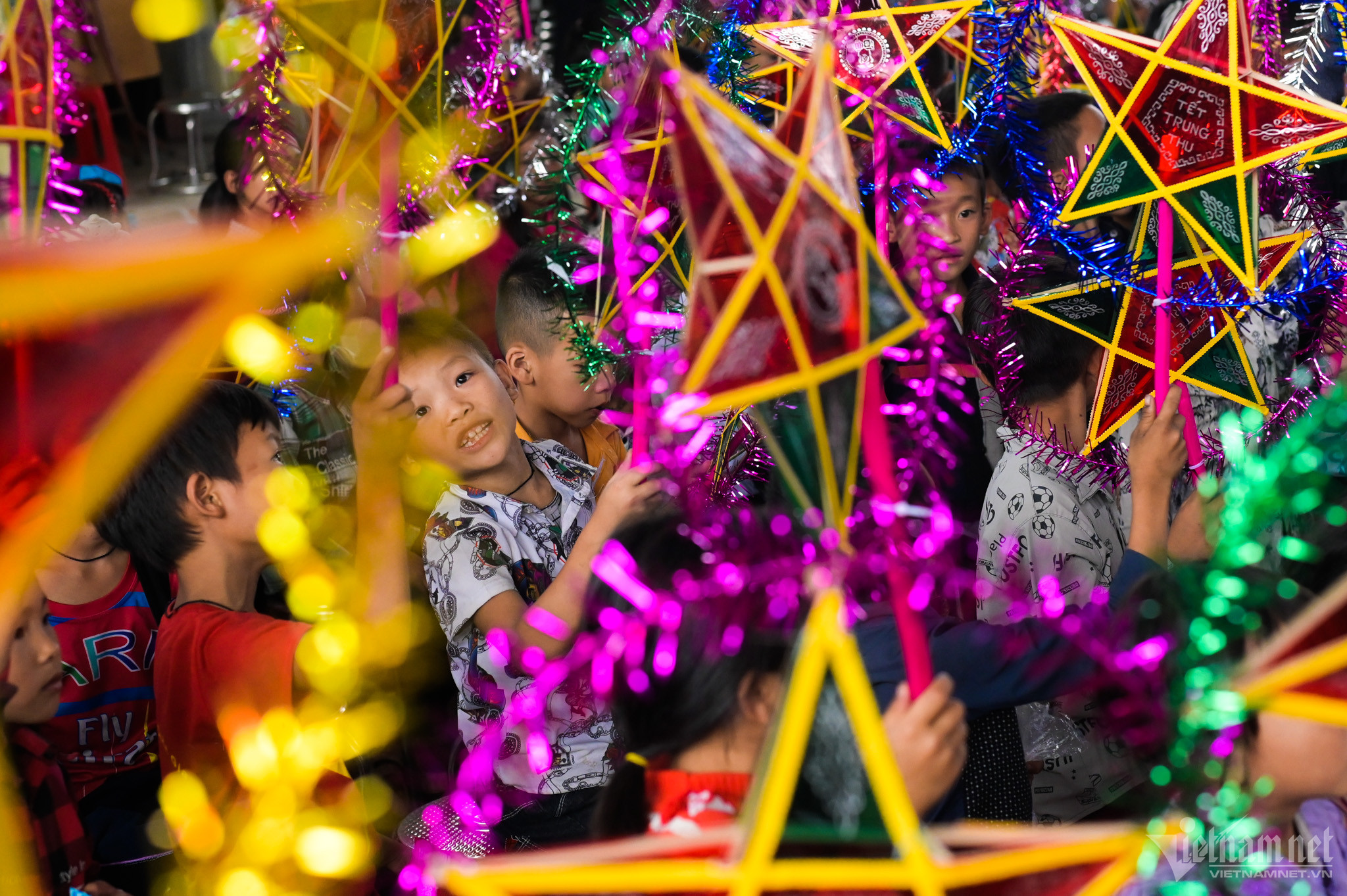 Em Phùng A Dính (học sinh lớp 3A) vui sướng cầm trên tay chiếc đèn ông sao vừa được tặng. Cậu bé đã ngắm nhìn món quà mới khá lâu.