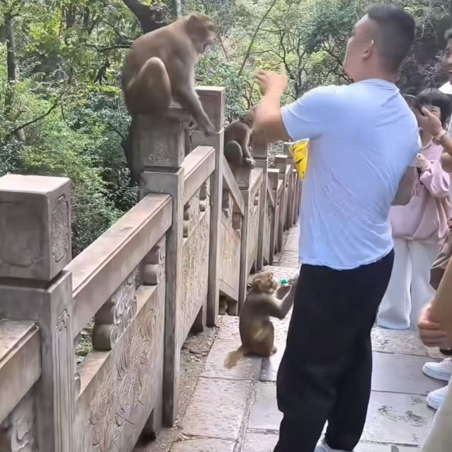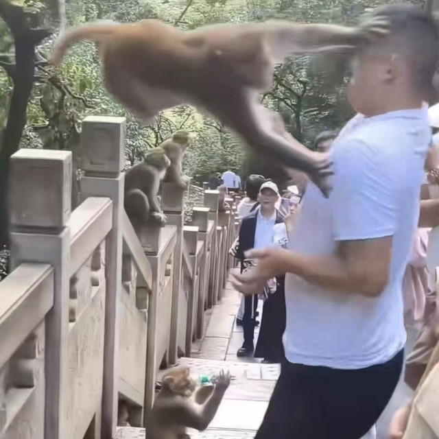 Theo truyền thông địa phương, sự việc xảy ra hôm 17/10. Những người chứng kiến cho biết, nam du khách là người "khơi mào" trước, khi dùng tay chạm mạnh lên mặt một con khỉ đuôi dài. Chỉ trong tích tắc, con khỉ bất ngờ phản công, tung hai chân đá thẳng vào mặt du khách.