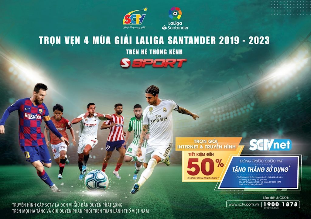 Song song với việc ưu đãi cước, đáp ứng lòng mong mỏi của những fan hâm mộ túc cầu, sau nhiều vòng đàm phán, SCTV đã mang về món quà cho khán giả yêu mến LaLiga. Theo đó, 4 mùa giải LaLiga từ 2019/2020 đến mùa giải 2022/2023, Truyền hình cáp SCTV là đơn vị giữ bản quyền phát sóng trên mọi hạ tầng và giữ quyền phân phối trên toàn lãnh thổ Việt Nam.