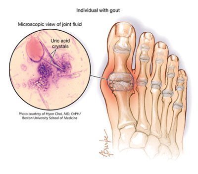 Gout là bệnh do rối loạn chuyển hóa acid uric trong cơ thể. Khi quá