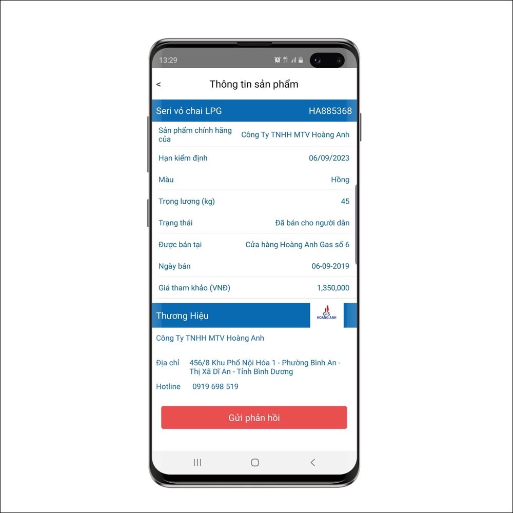 Các thông tin người tiêu dùng được cung cấp đầy đủ bao gồm: mã seri của bình (so chiếu trên tai bình và thân bình), nhà sản xuất, hạn kiểm định, màu sắc, cân nặng, mua tại cửa hàng nào và ngày mua. Với bất kỳ thông tin không trùng khớp nào, người tiêu dùng có thể từ chối không mua hàng và có thể gửi phản hồi về đơn vị sản xuất trên màn hình điện thoại.