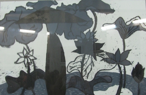 Tác phẩm khắc gỗ “Hồ Sen” của tác giả Nguyễn Thị Tuệ Thư, 20 tuổi |