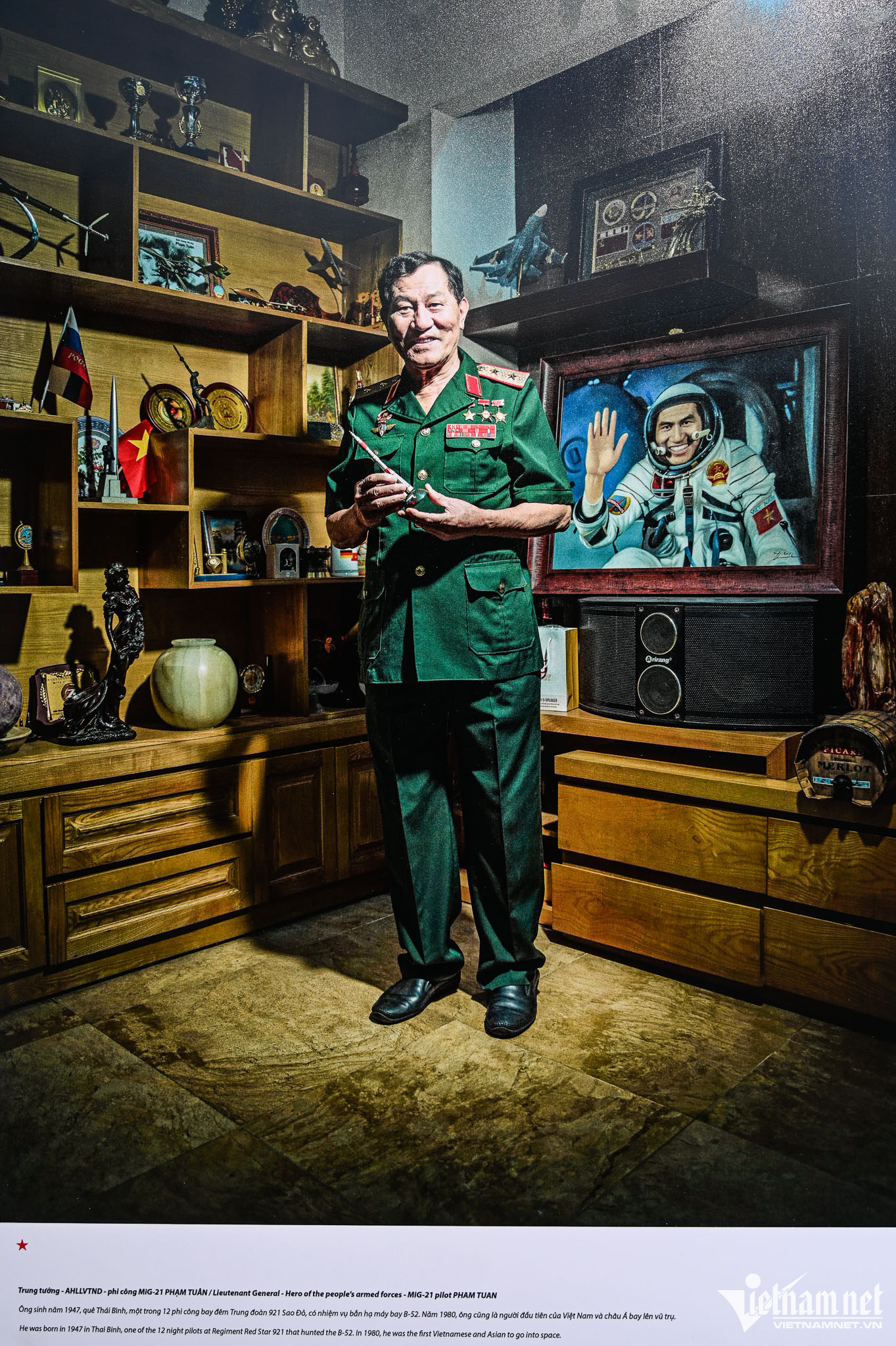 Chân dung Trung tướng - phi công MiG-21 Phạm Tuân, người đầu tiên bắn hạ được máy bay B52 từ trên không và trở về an toàn. Với thành tích này, ông đã được phong danh hiệu AHLLVTND vào ngày 3/9/1973. Lúc đó, ông thuộc quân số của Đại đội 5, Trung đoàn 921, Sư đoàn 371. Năm 1980, ông cũng là người đầu tiên của Việt Nam và châu Á bay lên vũ trụ.