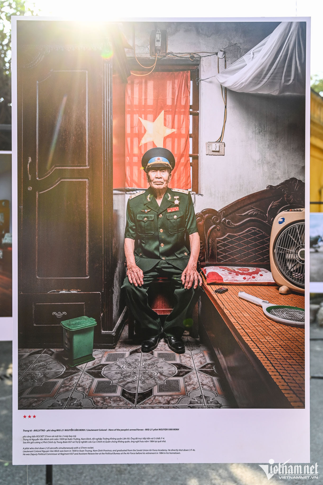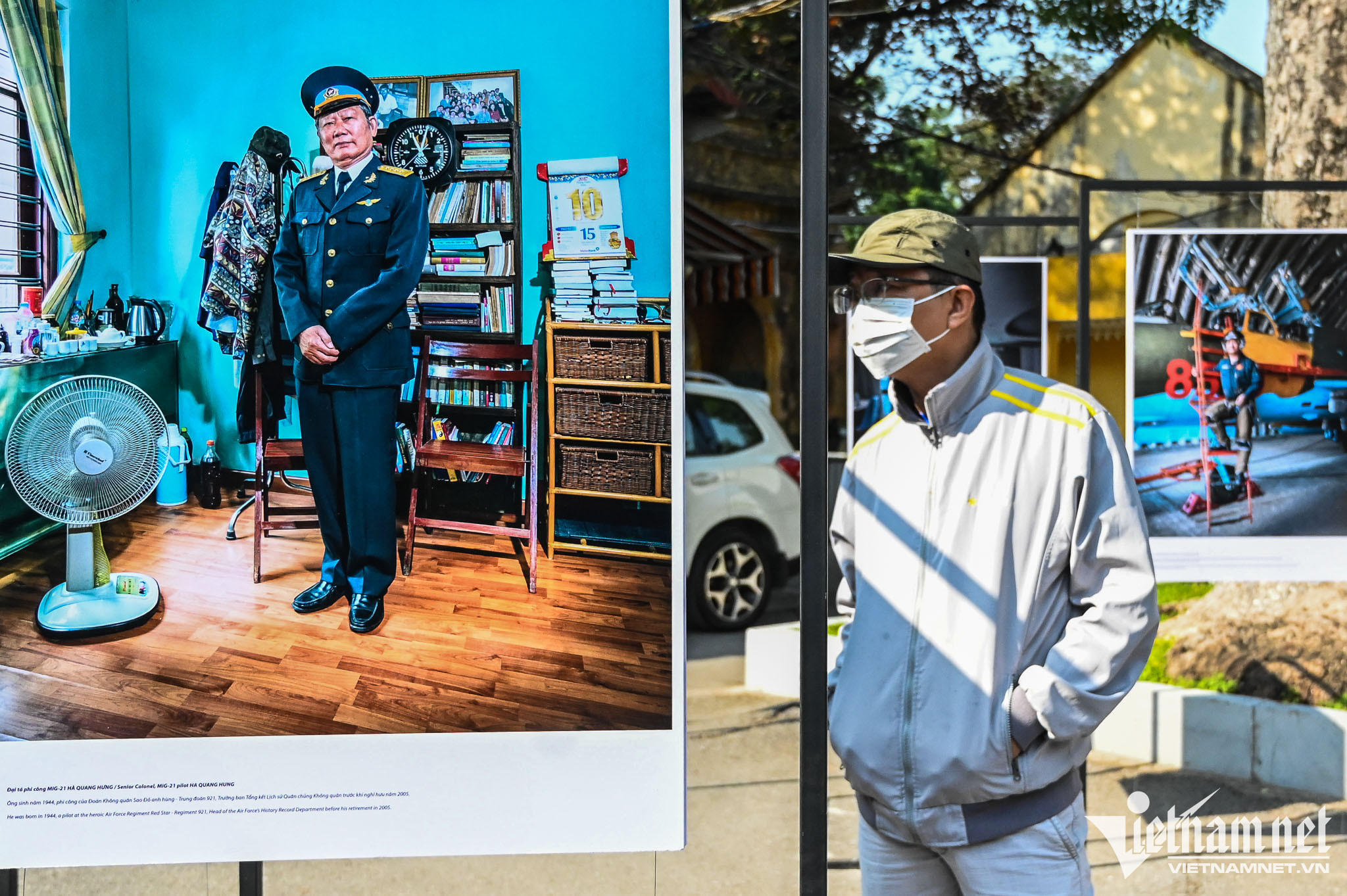 Ông Đặng Quang Thướng (75 tuổi) bắt chuyến tàu điện từ Hà Đông đến tham quan triển lãm. Từng làm việc hậu cần tại Quân chủng Phòng không - Không quân, ông chia sẻ, ngày đó tất cả đều dành sự ưu tiên cho không quân để họ có thể làm chủ phương tiện, chiến thắng trên bầu trời. Nhớ về một thời hoa lửa, cựu binh nghẹn ngào: “Trong suốt 12 ngày đêm, mỗi lần nghe tin máy bay địch rơi ai cũng cảm thấy hạnh phúc, thấy chiến thắng đến gần hơn”.