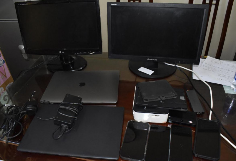 Khám xét khẩn cấp nơi ở của các đối tượng, công an thu giữ 5 máy tính xách tay, 2 cây máy tính, 10 điện thoại di động, hơn 300 sim điện thoại và nhiều tài liệu có liên quan đến hành vi đánh bạc.