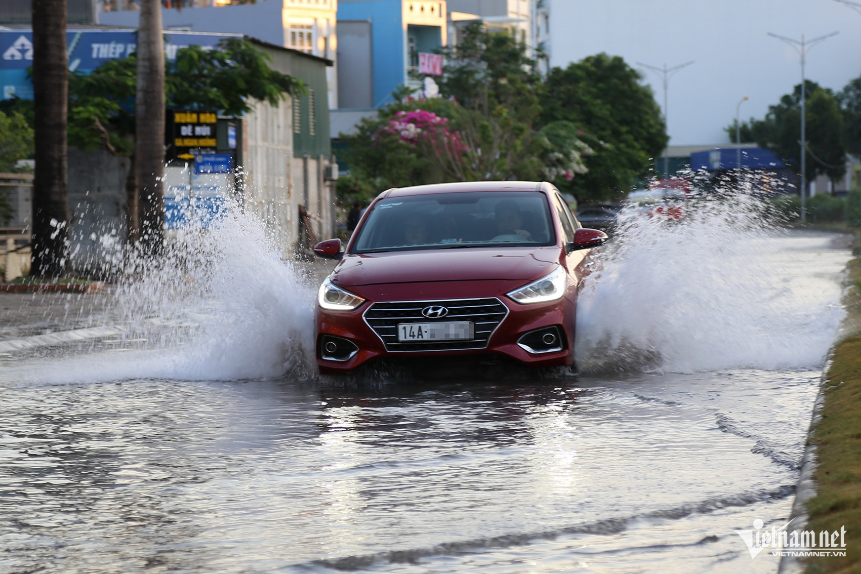Cụ thể, từ khoảng 6h đến hơn 7h sáng, nước biển dâng nhanh khiến tuyến đường ven biển Trần Thái Tông bị ngập sâu gần 1m, ảnh hưởng đến việc đi lại của người dân trong thời điểm đầu ngày.