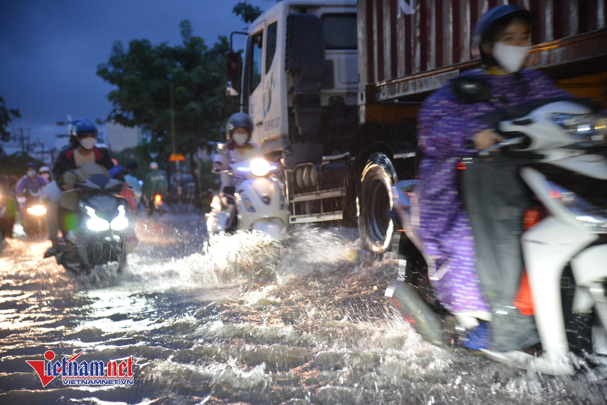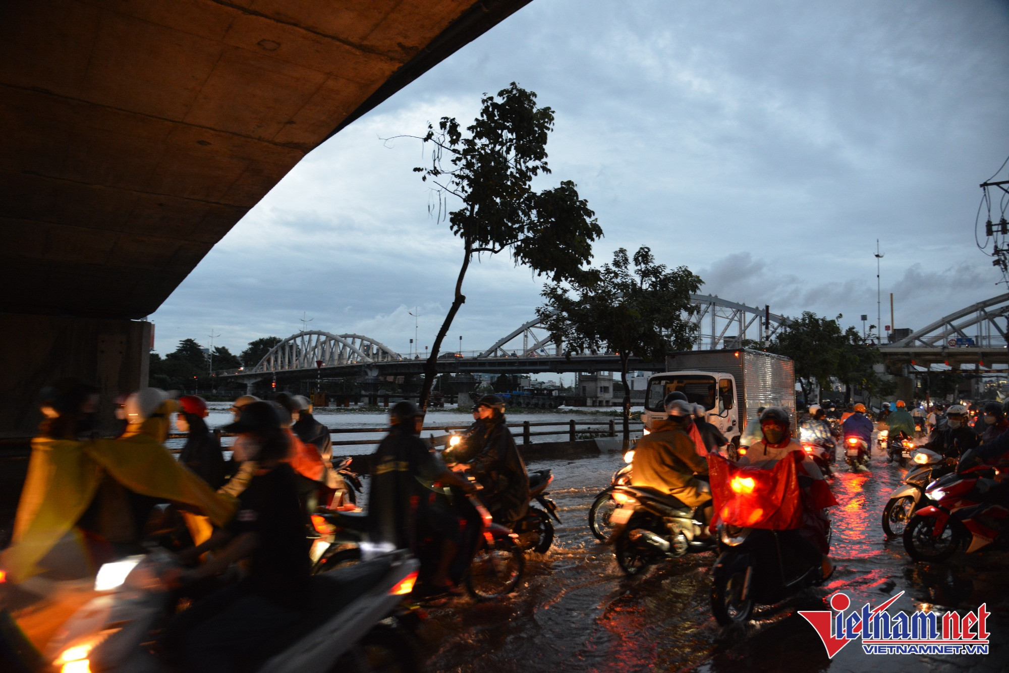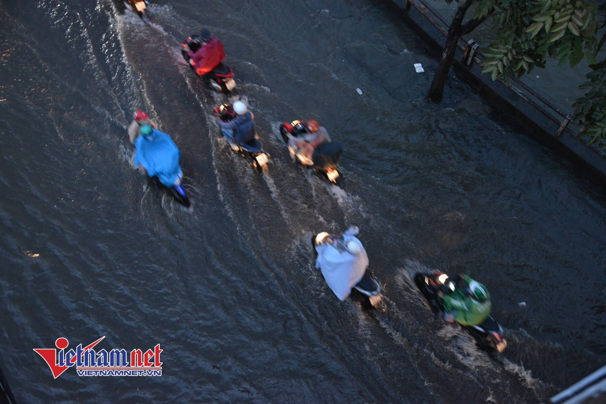 Ghi nhận tối 27/9 trên đường Trần Xuân Soạn (phường Tân Thuận Tây, Quận 7), nước từ kênh Tẻ dâng cao tràn qua các tuyến kè và tràn lên đường gây ngập kéo dàiNhiều đoạn nước ngập sâu hơn nửa bánh xe khiến người dân đi lại rất khó khănTheo Đài khí tượng thủy văn khu vực Nam Bộ, trong ngày 27/9 (2/9 âm lịch), mực nước cao nhất tại trạm Phú An - sông Sài Gòn đạt 1,58m (lúc 6h3) và 1,57m (lúc 18h), xấp xỉ báo động IIINước ngập vào giờ tan tầm khiến việc đi lại của người dân càng khó khănCả đoạn đường dài bị nước triều cường khỏa lấp khiến người đi đường khó phân biệt đâu là đường, đâu là sông hay kênhDự kiến, trong ngày 28/9 (3/9 âm lịch) triều cường tiếp tục đạt mức 1,59m (lúc 7h30) và 1,60m (lúc 19h) và các ngày tiếp theo sẽ giảm dần